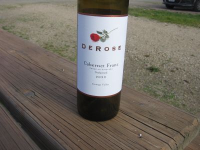 An excellent Cabernet Franc. From the Cienega valley in mid California. DeRose is big on dry farming, this Cabernet Franc is a prime example of their craft. A mid priced wine at $30 from the winery and rated at 4.1 by Vivino you won't go wrong serving this vino to friends and family.